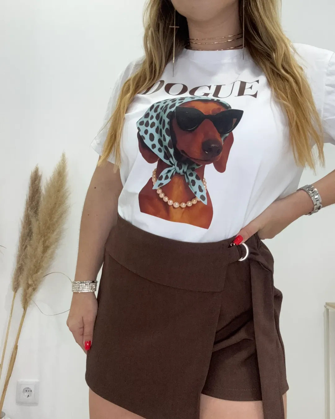 T-shirt oversize com estampadp de cão salsicha. Serve S M L.